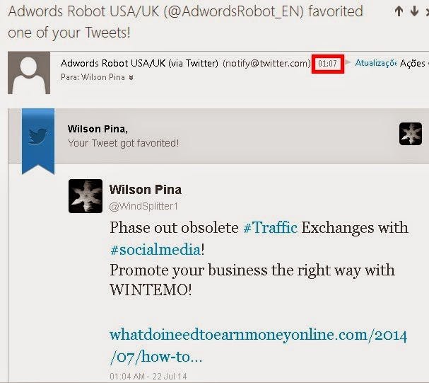 In the afternoon, probably the time it is now in the U.S., (19:00 P.M) I received another email from Twitter that I received a new follower!!